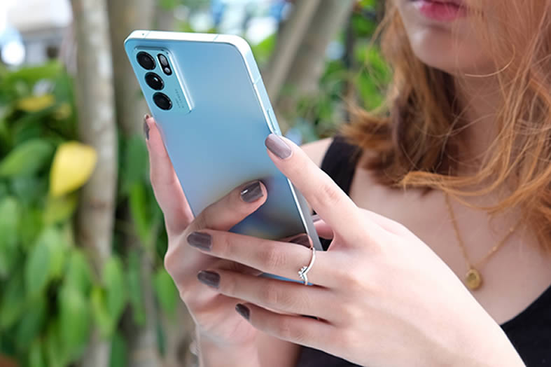 Pour compléter la fiche technique de notre Oppo Reno 6 Pro, qu’il faut avouer être plutôt à la hauteur, le constructeur chinois a opté pour un appareil photo dorsal à quatre capteurs. Un principal de 50 Mégapixels (Sony IMX766) ouvrant à f/1,8 avec une optique grand-angle, un ultra grand angle de 16 MP (Sony IMX481) avec une ouverture à f/2,2, un téléobjectif de 13 MP et un objectif macro de 2MP. Le tout, permettant de capturer en 6 144 x 8 192 pixels et filmer en 4K à 60 images par seconde ou en 1080p à 120 fps pour des clichés nets, détaillés et aux couleurs belles et fidèles.